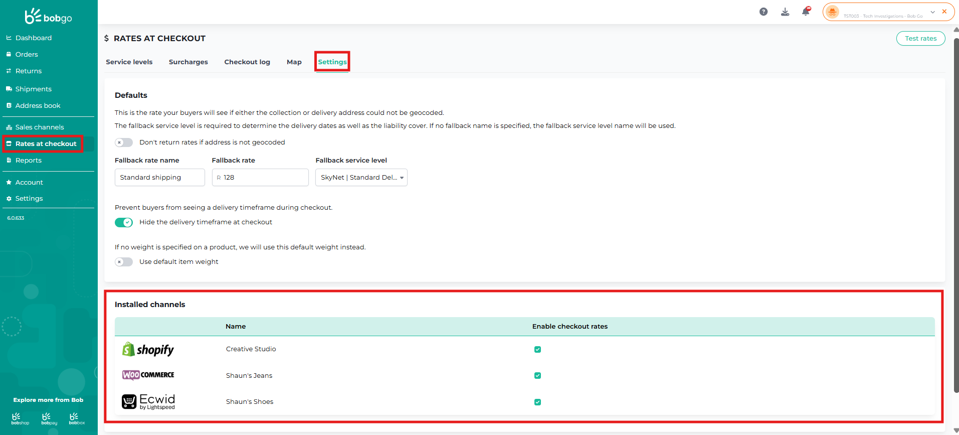Step 3: Enable Rates at Checkout in Your Bob Go Account