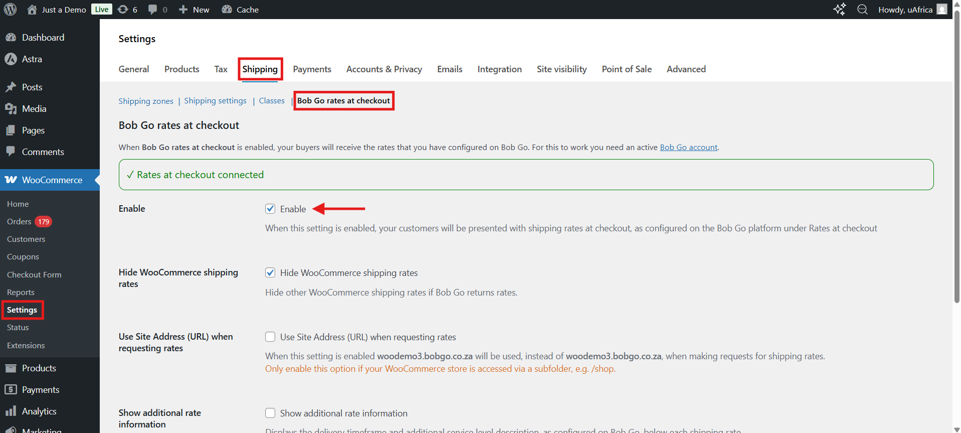 Step 2: Enable Bob Go Rates at Checkout in WooCommerce